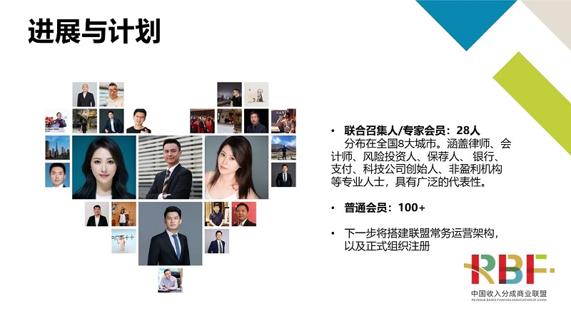 未來的中國收入分成商業聯盟將秉持著共創、共享、共榮的價值觀。通過共同探索新的發展模式,推動整個 RBF 領域的進步,實現共創;做到信息透明、資源共享,達到優勢互補、互利共贏的共享目標;積極參與行業標準制定、政策倡導等工作,加強國際交流與合作,關注RBF行業生態建設,促進產業鏈協同發展,履行社會責任,推動行業可持續發展,以達成共榮。